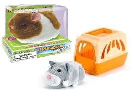 Hamster Mania! cute carrier, plush toy and runabout hamsterRunabout hamster is battery powered and scoots around room or tableThe carrier is plastic and strong with working handle and doorBoth hamsters or your zhu zhu pets fit in the carrier