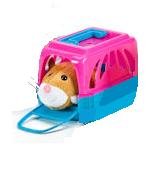Hamster Travel Carrier Blue/Pink with lite brown Hamster "Willie" with Handle and Door - Fits 2 Zhu Zhu Pets Feature