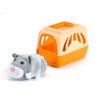 Cute travel carrier with soft Hamster "Nipper" grey colorCarrier is Cream Orange color - strong plasticworking handle and door! fits 2 Zhu Zhu pets inside6" long carrier, very cute plush hamsterkids will love the set